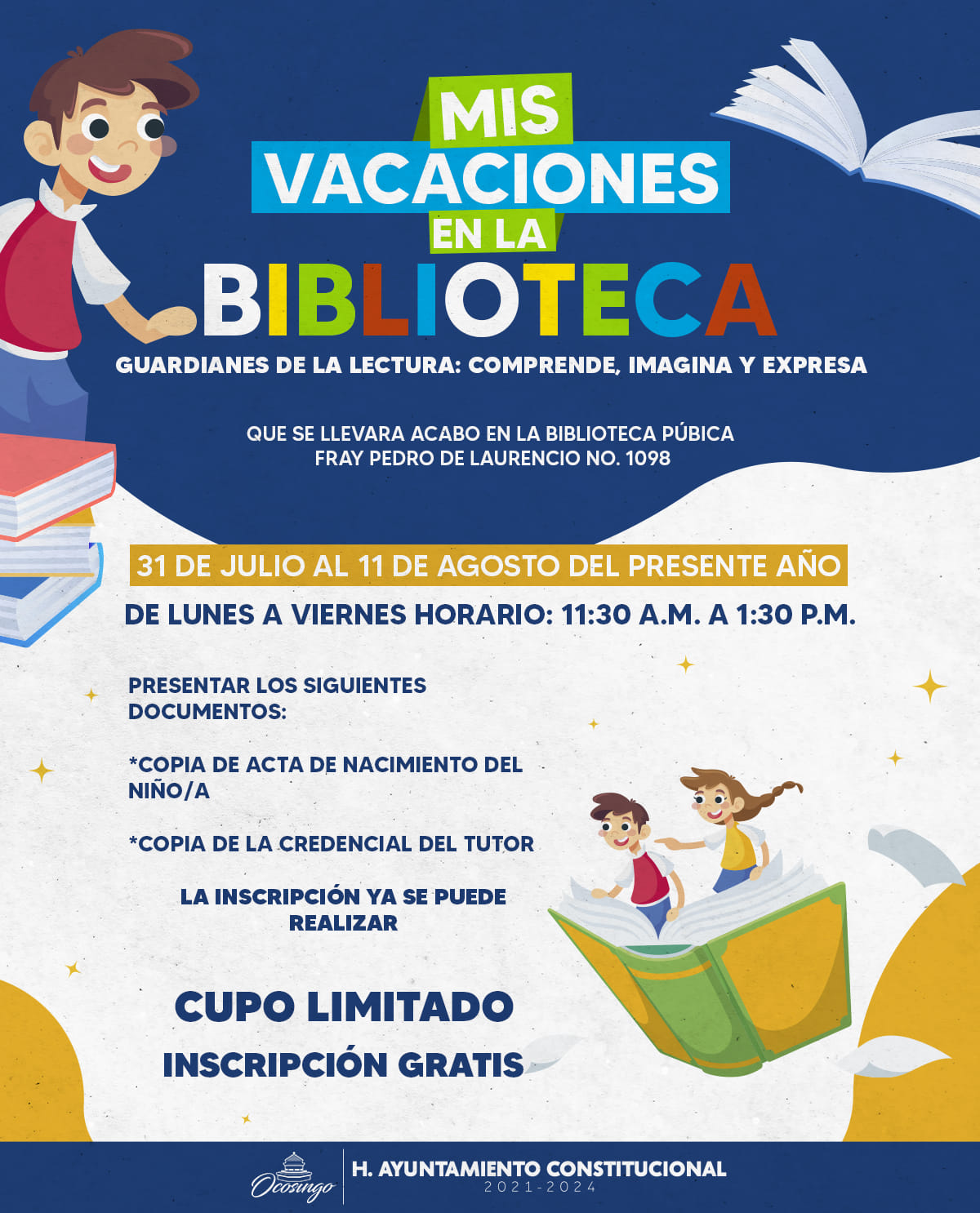 EN OCOSINGO SE LLEVA A CABO EL PROGRAMA MIS VACACIONES EN LA BIBLIOTECA La lectura es de suma importancia en la vida, por ello te invitamos a qué en estás vacaciones seas parte de los «Guardianes de la lectura», dónde obtendrás nuevos aprendizajes y mucha imaginación. #DeLaManoConElPueblo