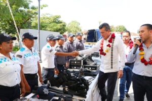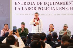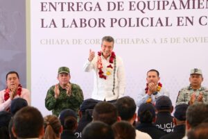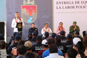 “En Chiapas, estamos trabajando para atender lo más preciado que pide un pueblo, que es su seguridad, pues al garantizarla, se genera más progreso, desarrollo y participación de inversiones para fortalecer la economía de los pueblos. Por eso, seguiremos entregando patrullas, insumos, uniformes, botas tácticas y todo lo que se requiera para atender la seguridad de los habitantes”, enfatizó.