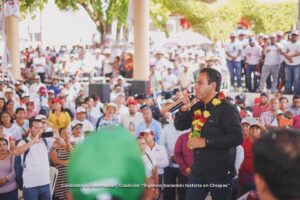 “Estoy convencido que esta frontera, una frontera muy productiva, tiene que recuperar el vínculo comercial con Centroamérica, que florezca nuestra cabecera, que florezca por siempre la actividad comercial”, expresó el abanderado de la coalición más grande de la historia.