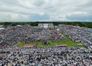 • Ante más de 40 mil personas reunidas en el Estadio Olímpico de Tapachula, la mandataria reafirmó que México es fuerte porque no hay división entre gobierno y pueblo