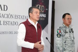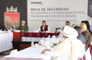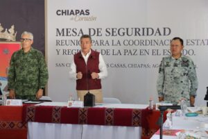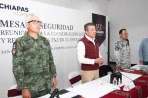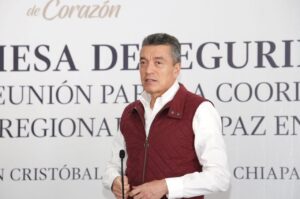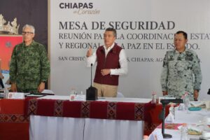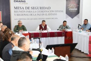 En San Cristóbal de Las Casas, el gobernador Rutilio Escandón Cadenas encabezó la Mesa de Coordinación Estatal para la Construcción de la Paz y la Seguridad, donde informó que, de acuerdo a con el pronóstico meteorológico, van a continuar las lluvias moderadas en Chiapas, sobre todo en los municipios de las regiones Soconusco, Istmo Costa, Sierra, Norte, De Los Bosques, Tulijá Tseltal Chol y Mezcalapa.