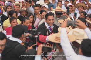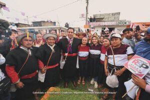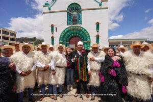 Portando el traje típico de San Juan Chamula y el bastón de mando, el candidato a gobernador, dijo al pueblo que va a trabajar de la mano de todos para llevar infraestructura y se convierta en el municipio más emblemático turísticamente reconocido en Chiapas y a nivel mundial.