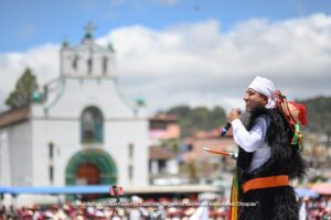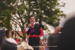 En San Andrés Larráinzar, Eduardo Ramírez lanzó un sentido pronunciamiento sobre la reivindicación de los pueblos indígenas, que se han mantenido en resistencia tras la Conquista, desde hace 500 años.