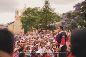 Desde este municipio, lanzó un llamado de unidad y de fraternidad, a construir entre todas y todos la nueva era de Chiapas, en donde las poblaciones indígenas no sean sometidas y, por el contrario, vivan su identidad en un camino de armonía, y su legado sea ser un misionero de paz.