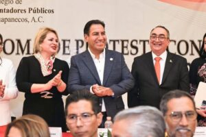 El gobernador Eduardo Ramírez Aguilar asistió como testigo de honor a la toma de protesta del Consejo Directivo del Colegio de Contadores Públicos Chiapanecos A.C. (CCPCH) para el periodo 2026-2027. En este contexto, destacó que el gobierno de la Nueva ERA mantiene una relación cercana y colaborativa con los sectores sociales, profesionales, económicos y productivos, con el objetivo de construir la paz, el desarrollo y la prosperidad compartida en Chiapas.