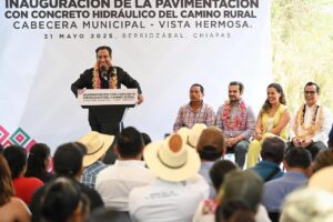 Acompañó al alcalde en la inauguración de la pavimentación con concreto hidráulico de un camino rural   En el marco del 127 aniversario de Berriozábal, el gobernador Eduardo Ramírez Aguilar visitó el municipio para participar en la Sesión Solemne de Cabildo, donde se otorgó la medalla conmemorativa “Felipe Berriozábal”, y acompañó al presidente municipal, Jorge  Arturo Acero Gómez, a inaugurar la pavimentación con concreto hidráulico del camino rural que conecta la cabecera municipal con la localidad Vista Hermosa.   Durante la ceremonia, se destacó que esta medalla representa un homenaje a quienes han contribuido al desarrollo de Berriozábal. En esta ocasión, fue entregada de manera póstuma a Consuelo González Jiménez, reconocida como la primera partera tradicional del municipio. Su nieta, Reyna Isabel Guzmán González, recibió la distinción en su nombre.   El alcalde Jorge Acero resaltó que esta medalla honra a “Tía Cheyito”, como era conocida, por su trayectoria de más de 70 años, siendo ejemplo de las mujeres que, desde la cotidianidad y el anonimato, han preservado saberes ancestrales.   Reyna Isabel Guzmán, quien ha seguido los pasos de su abuela, expresó su agradecimiento por el reconocimiento, y enfatizó que las parteras siguen cumpliendo su misión con orgullo y responsabilidad, ayudando a prevenir muertes maternas y prenatales.   El tercer regidor, Diego Balcázar Aquino, leyó una semblanza de Consuelo González Jiménez, resaltando su invaluable labor al atender cientos de nacimientos desde su hogar, y subrayó cómo su legado sigue vigente en muchas parteras de Berriozábal.   Más tarde, durante la inauguración del camino rural, Eduardo Ramírez felicitó a las y los habitantes por el aniversario de su municipio y reafirmó su compromiso de seguir apoyando a Berriozábal mediante obras de infraestructura y acciones coordinadas con el Ayuntamiento. Aseguró que también se reforzará la seguridad, para garantizar que las familias vivan con tranquilidad y que los caminos no vuelvan a ser rutas tomadas por la delincuencia.   “Tenemos un compromiso moral, social y personal con nuestro presente y el futuro de Berriozábal. Por ello, siéntanse tranquilos; no vamos a permitir que se metan con el pueblo. Nunca más se sentirán solos”, afirmó el mandatario, al señalar que su gobierno actúa con determinación y con apego a la ley.   Por su parte, el presidente municipal reconoció al gobierno estatal por las acciones en materia de seguridad y por reactivar el turismo. Informó que esta obra de 800 metros lineales de pavimento con concreto hidráulico beneficiará a más de 7 mil 600 personas de distintas comunidades reconocidas por su vocación agrícola y forestal.   En este acto, el mandatario saludó a las y los habitantes, quienes le agradecieron por el trabajo que realiza su gobierno para devolver la paz y el respaldo que brinda al municipio para impulsar obras de beneficio social.   En estos eventos estuvieron presentes la hija del gobernador, Yazmín Ramírez Espinoza; el magistrado presidente del Tribunal Superior de Justicia del Estado, Juan Carlos Moreno Guillén; el secretario de Educación, Roger Adrián Mandujano Ayala; las diputadas locales Marcela Castillo Atristain y María Mandiola Totoricaguena; así como Irma Carpio Díaz, Magdalena Guzmán González, Nandy Guadalupe Guzmán y Kevin Leobardo Sarmiento Guzmán, familiares de Consuelo González; las y los integrantes del Cabildo, el comisariado ejidal de Vista Hermosa, Marcos Pérez Gómez, entre otros.