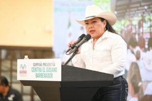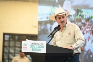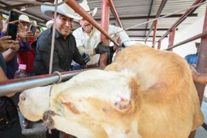 En este marco, el mandatario explicó que, mediante esta estrategia de prevención, control y erradicación del gusano barrenador del ganado, en esta ocasión se entregaron 4 mil 805 paquetes de ivermectina, que constan de 717 mil dosis y que beneficiarán a 10 mil 835 productores y productoras, de los cuales mil 631 son mujeres. Detalló que, junto a las Fuerzas Armadas y las instancias zoosanitarias, se mantienen activos los filtros de vigilancia en distintas regiones del estado, a fin de evitar riesgos y proteger el hato ganadero.