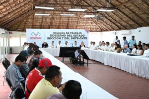 *Eduardo Ramírez fortalece diálogo con maestras y maestros de la Sección 7 del SNTE-CNTE* El gobernador Eduardo Ramírez Aguilar sostuvo una reunión de trabajo con integrantes de la Sección 7 del SNTE-CNTE Chiapas, en la que escuchó con atención sus planteamientos. Acompañado por los secretarios de Educación, Roger Mandujano Ayala, y de Finanzas, Manuel Antonio Pariente Gavito, el mandatario refrendó la disposición de su gobierno para trabajar de manera conjunta y atender las necesidades del magisterio chiapaneco, dentro del ámbito de sus competencias y atribuciones.
