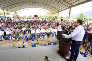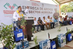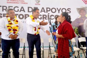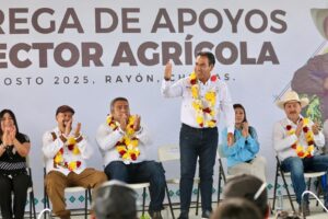 En Rayón, el gobernador Eduardo Ramírez Aguilar entregó insumos agrícolas y supervisó obras de infraestructura educativa, destacando que su gobierno trabaja cercano a las y los productores para fortalecer el campo y garantizar espacios escolares dignos.