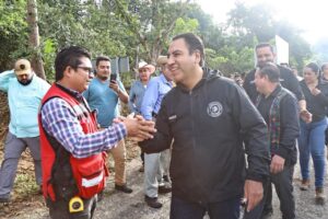 En esta gira de trabajo, el gobernador estuvo acompañado por el coordinador general ejecutivo de la Secretaría de Turismo estatal, Segundo Guillén Gordillo; la subsecretaria de Desarrollo Forestal y Jardines Botánicos, Ysolina Suárez Lacroix; y el diputado federal Alfredo Vázquez Vázquez, entre otras autoridades y habitantes.