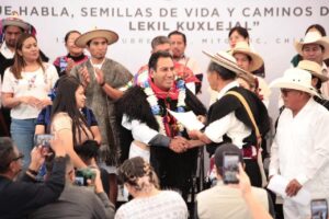 En el marco del Día de la Nación Pluricultural, el gobernador Eduardo Ramírez Aguilar participó en el Congreso Estatal Indígena de los Pueblos Originarios “Tierra que habla, semillas de vida y caminos de unidad para el lekil kuxlejal”, realizado en el municipio de Mitontic, donde se reunieron autoridades y representantes de diversas etnias. Subrayó que el gobierno de la Nueva ERA privilegia la unidad y el diálogo como vías para alcanzar el desarrollo, la prosperidad compartida y el buen vivir de los pueblos.