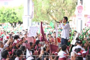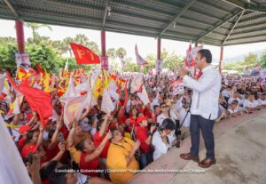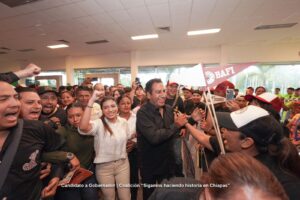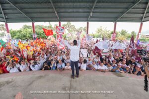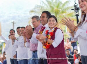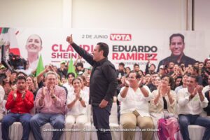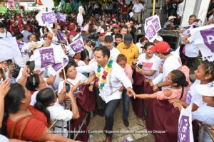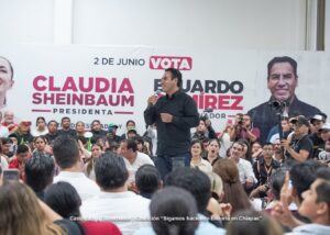 Eduardo Ramírez comentó que como gobernador, su mayor objetivo es la tranquilidad y paz social en Chiapas, “no queremos que haya violencia y por ello, quiero pedirles que el próximo 2 de junio llevemos por primera vez a la Presidencia de la República, a la primera mujer presidenta, porque México se escribe con M de mujer”.