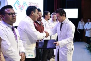 En su intervención, el gobernador Eduardo Ramírez Aguilar convocó a las médicas y los médicos especialistas provenientes de Chiapas y de distintos estados del país a ejercer su labor con profesionalismo, sensibilidad, empatía y, sobre todo, con un alto sentido humanista. Señaló que esta responsabilidad será clave para fortalecer los servicios de salud y contribuir al buen vivir y a la prosperidad de las comunidades chiapanecas.