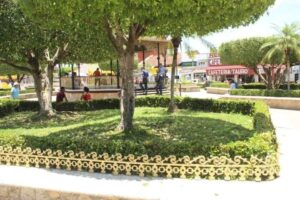 EL GOBIERNO MUNICIPAL QUE PRESIDE EL ALCALDE ANDRÉS CARBALLO CÓRDOVA REALIZA ACCIONES DE EMBELLECIMIENTO DEL PARQUE CENTRAL DE PICHUCALCO.