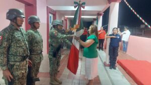La escolta de la Cuarta Compañía de Infantería No Encuadrada, Fue la Responsable de llevar a cabo el protocolo de este acto cívico que enorgullece a todos los Mexicanos.