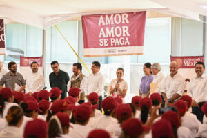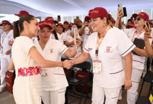 “Yo digo que es el programa más ambicioso de todo el mundo de atención y prevención a la salud y lo llevan a cabo las y los mejores de México, que son las y los enfermeros de nuestro país, la verdad, los médicos también, médicas, pero la verdad es que el trabajo que hacen las y los trabajadores de la salud, enfermeras, enfermeros es algo extraordinario y nosotros queremos que sean el centro de este programa y se van a volver famosos mundialmente porque vamos a presumir, dentro de muy pocos años, que somos el programa de prevención a la salud más importante de todo el mundo y que se va a notar en los índices”, afirmó ante 500 médicas, médicos, enfermeras, enfermeros, servidores de la nación y derechohabientes que la acompañaron.