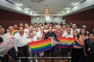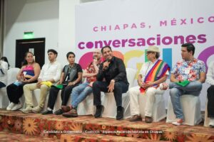También, asistió a las conversaciones de Nación Orgullo, organizado por la comunidad LGBTTTIQ+, quienes buscan la visibilización y el reconocimiento de sus derechos. Allí, dijo que ve un Chiapas incluyente y libre de discriminación, que de manera histórica ha sido excluida.