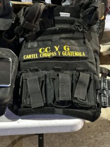 Les fueron aseguradas tres armas largas tipo AK-47 de las llamadas cuerno de chivo, siete cargadores abastecidos calibre 7.62×39, dos armas largas calibre .22; también cuatro vehículos tipo pick up color blanco, dos motocicletas, cinco celulares, tres radios de comunicación, equipo táctico con la leyenda CCYG, un cuchillo, una cámara fotográfica, y una gorra, los cuales fueron puestos a disposición de la autoridad competente.
