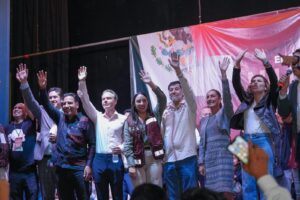 En el teatro Million Dollar, al que se dieron cita miles de migrantes simpatizantes de Morena, Eduardo Ramírez saludó al dirigente nacional de Morena, Mario Delgado Carrillo y al senador con licencia, Manuel Velasco Coello con quienes coincidimos en que la prioridad es respaldar el proyecto de continuidad de la cuarta transformación del pueblo mexicano.