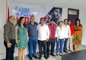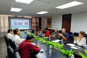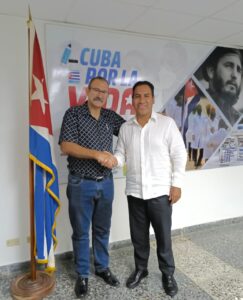 En su visita al Ministerio de Salud, Eduardo Ramírez compartió puntos de vista con el viceministro de Salud Pública, Reynold Delfín García Moreiro; la directora de Atención Primaria de Salud, Yagen Pomares Pérez; la directora de Docencia Médica, Fidela Reyes Obediente; la presidenta de la Comercializadora de Servicios Médicos Cubanos, Yamila de Armas Águila; y el director en funciones de Relaciones Internacionales, Alex Carreras Pons.