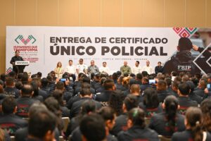 Durante la entrega del Certificado Único Policial (CUP) a elementos de las policías municipales de Berriozábal, Tonalá, Tila y Ocosingo, así como de la Universidad de Seguridad Pública del Sureste, el gobernador Eduardo Ramírez Aguilar destacó que el trabajo de las y los policías ha sido uno de los engranajes más importantes en la consolidación de la paz en Chiapas. Al mismo tiempo, les pidió asumir con conciencia la responsabilidad de servir al pueblo y encontrar satisfacción en el deber cumplido.