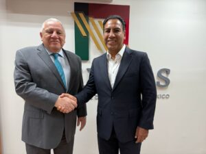 El gobernador Eduardo Ramírez Aguilar sostuvo una reunión de trabajo con el director general de la Agencia Nacional de Aduanas de México (ANAM), Rafael Marín Mollinedo, en las instalaciones de esta dependencia federal en la Ciudad de México.