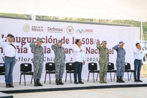 El gobernador Eduardo Ramírez Aguilar asistió a la ceremonia de inauguración de la 508/a. Compañía de la Guardia Nacional, en el municipio de Villaflores, donde resaltó que esta nueva unidad será de gran beneficio para la región y contribuirá a reforzar las acciones conjuntas a favor de la paz y la seguridad en Chiapas.