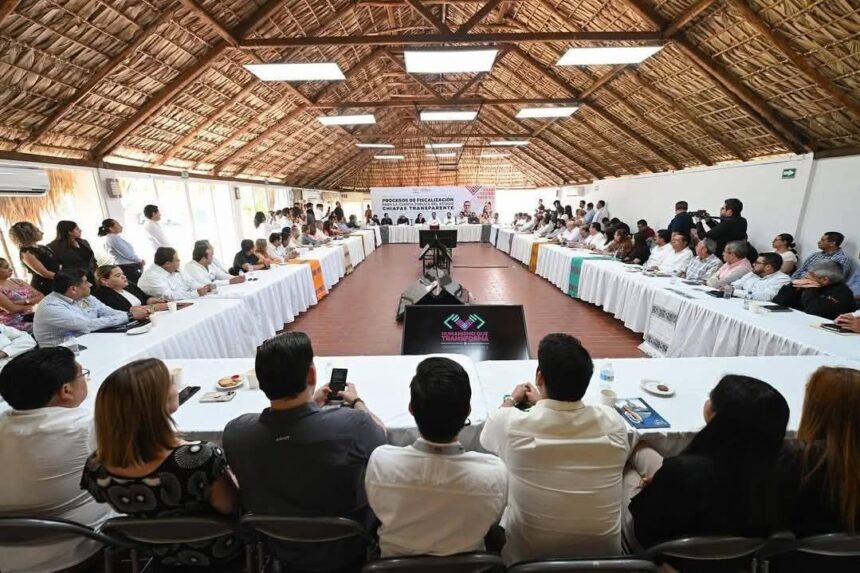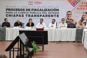 El gobernador Eduardo Ramírez Aguilar encabezó la reunión con enlaces para los procesos de fiscalización de la cuenta pública del estado de Chiapas, donde hizo un llamado a trabajar con responsabilidad, compromiso, honorabilidad y conciencia, sin simulaciones, con el propósito de consolidar una administración pública transparente, ordenada, eficiente y con alto sentido humanista, en beneficio del pueblo chiapaneco.