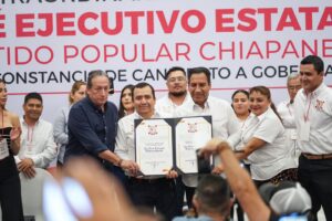 Acompañado de su hija, Renata Ramírez Espinoza, el senador con licencia agradeció a los dirigentes y la militancia del Partido Popular Chiapaneco, por este gran gesto político de solidaridad al elegirlo como su candidato a gobernador de Chiapas y, aseguró que sabrá honrar la confianza que depositaron en él.
